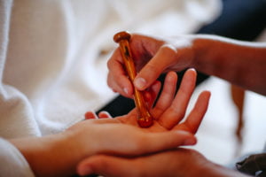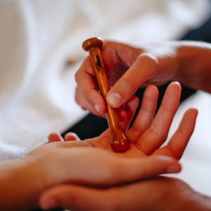 Je vous présente ce merveilleux nouveau soin. Un massage des pieds avec la baguette Kansa, métal guérisseur venant d’Inde !